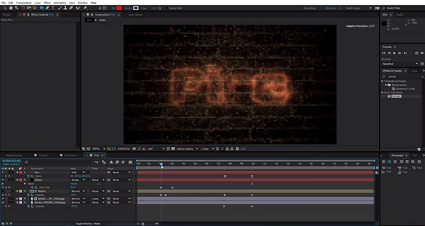 Open the Customize Core tab and set the Core Type to Text Layer. Then set the text layer to the text you have (Mine is Fire). Then drag your text layer to the top of your composition and set the blending mode to Add. Then drag in your background layer. If you are using the image that I am using, apply the curves effect to it and twist it like this: